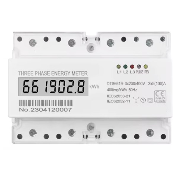 8. instalado en carril din, el medidor tiene solo 7 módulos de 125mm de ancho