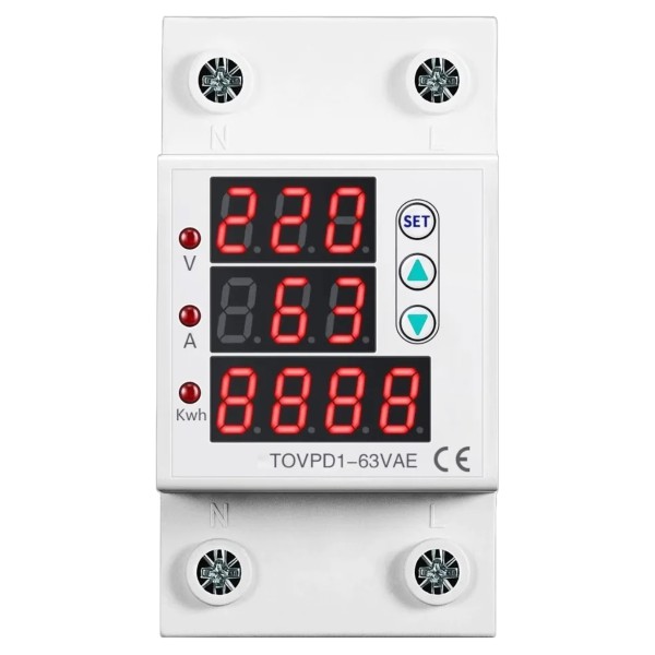 Protector Tension Monofasico 63a Din Digital Volt Amper Kwh
