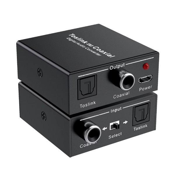 Audio óptico a coaxial: este convertidor de audio digital bidireccional dividirá la señal óptica de su fuente óptica (reproductor de Blu-ray y receptor de satélite, etc.) en su altavoz o amplificador, tanto el audio de salida óptico como el coaxial al mismo tiempo